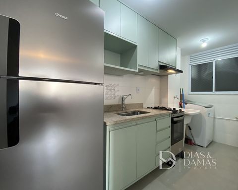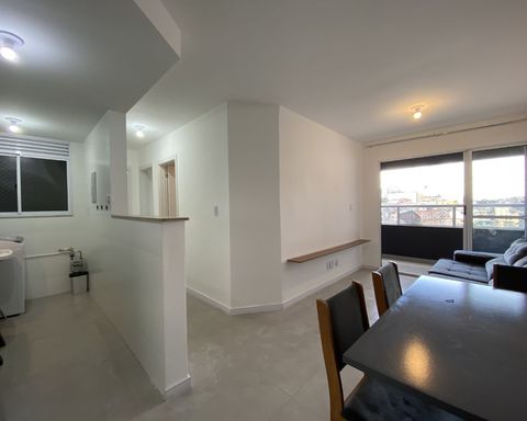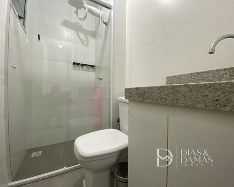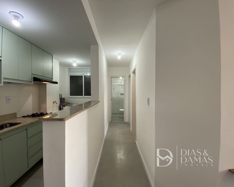 Apartamento 2 quartos (sendo 1 suíte), cozinha americana, lavanderia, sala com varanda e banheiro social.