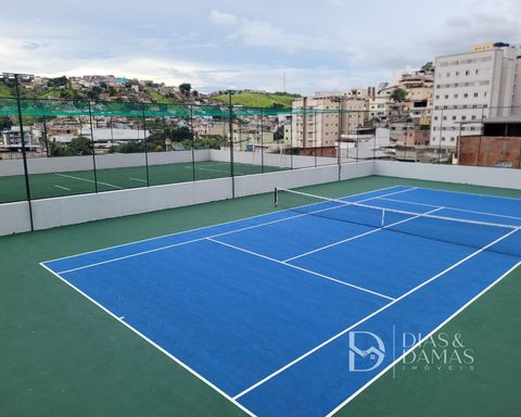 3 Elevadores, portaria 24h, piscina, hidromassagem, sauna com piscina interna aquecida, área gourmet, academia, salão de jogos, campo de futebol, espaço kids, churrasqueira, quadra de squash, quadra de tênis e bar.