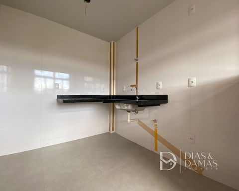 2 quartos (1 suíte), sala com varanda gourmet, banheiro social, cozinha e lavanderia. Uma vaga de garagem.