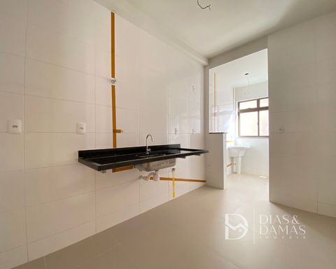 Apartamento 2 quartos, sala com varanda gourmet, cozinha, lavanderia e banheiro social. 1 vaga de garagem.