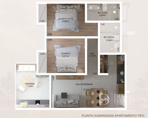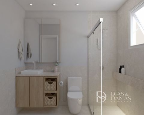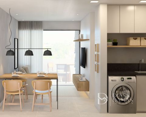 2 quartos (1 suíte), varanda gourmet, sala integrada a cozinha, lavanderia e banheiro social. 1 vaga de garagem.