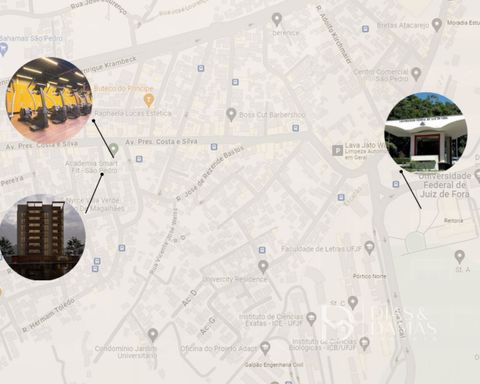 Apartamento localizado no bairro São Pedro, próximo à academia Smart Fit e à Padaria Pão Delícia.