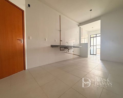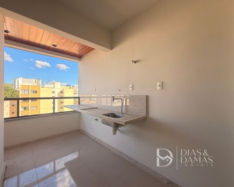 Apartamento 3 quartos (2 suítes), sala com varanda gourmet, cozinha, lavanderia e banheiro social. 2 vagas de garagem.