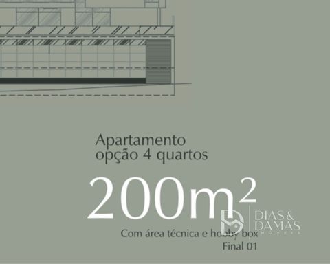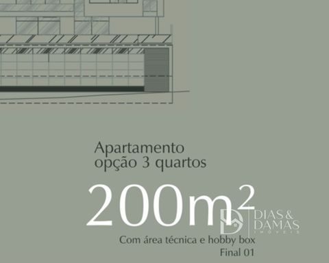 Opção 2 (apartamento tipo): 4 quartos (2 suítes) e 3 vagas de garagem. 200m².