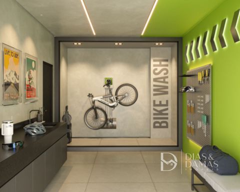 Rooftop lounge com piscina aquecida e adega. Área gourmet. Salão de festas. Academia boutique. Kids place. Pet place. Bike Wash. Hobby box. Elevadores de alta velocidade. Interfone.