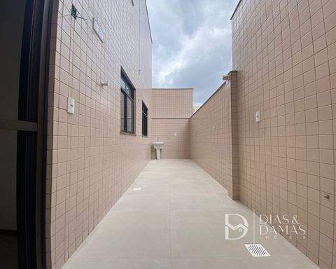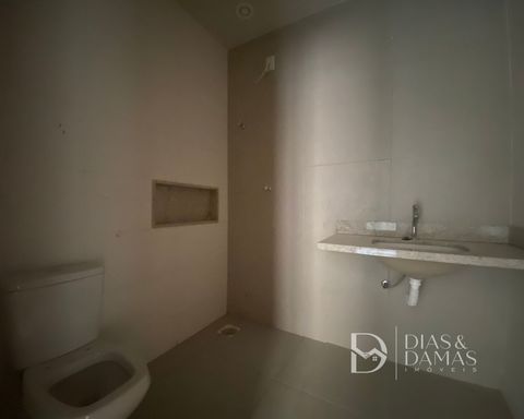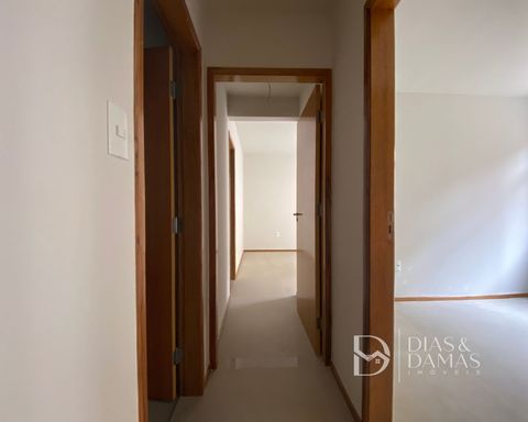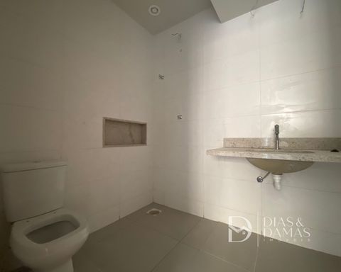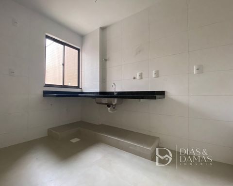 2 quartos (1 suíte), sala, cozinha, banheiro social, lavanderia e área. Uma vaga de garagem.