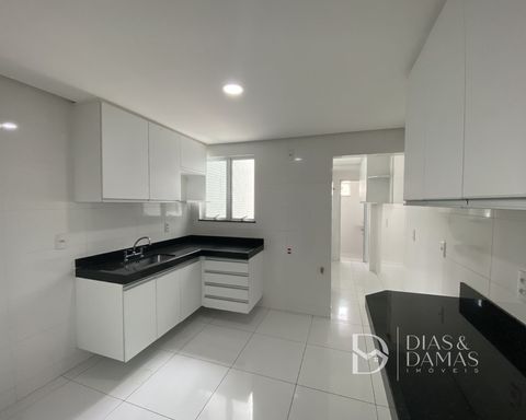 São 4 quartos mobiliados (sendo 3 suítes), sala dois ambientes com varanda, banheiro social, cozinha espaçosa com armário, lavanderia. Possui três vagas de garagem independentes.