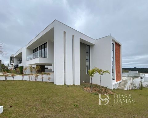 Alphaville II - Esta casa está localizada em rua plana do condomínio em um terreno em declive. Casa nova, acabamento impecável, e uma área de lazer muito espaçosa.