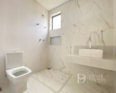 Alphaville II - Esta casa está localizada em rua plana do condomínio em um terreno em declive. Casa nova, acabamento impecável, e uma área de lazer muito espaçosa.