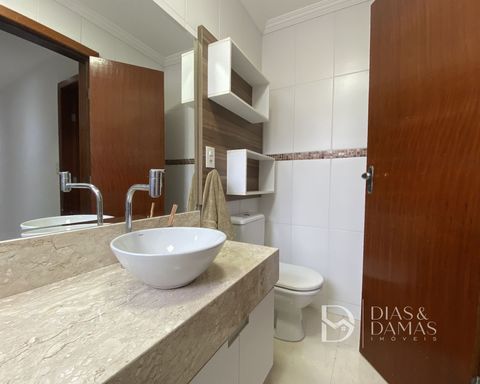 1º piso: Sala, varanda, 2 quartos (1 suíte com closet), banheiro social, cozinha e lavanderia.