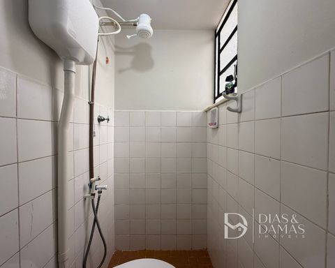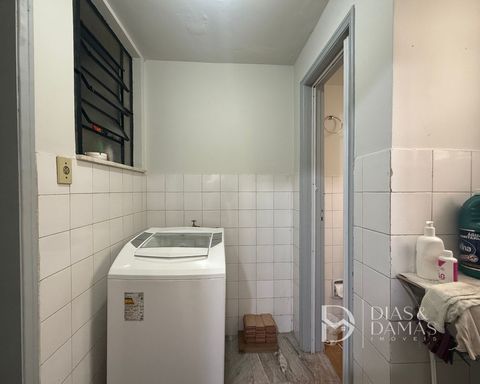 2 quartos, sala, banheiro social, cozinha, área de serviço e quarto e banheiro de serviço. Vaga de garagem numerada (difícil acesso). 2 lances de escada.