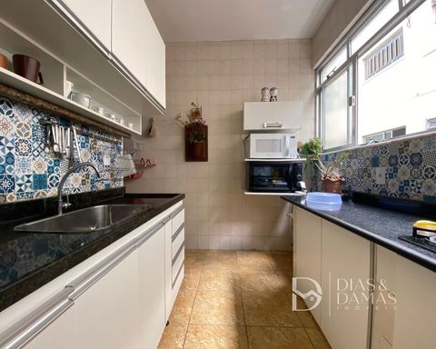 Apartamento de frente, amplo e com armários planejados na cozinha e banheiros.
