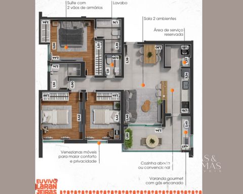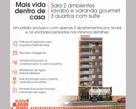 3 quartos (uma suíte), sala 2 ambientes, varanda gourmet, cozinha, lavanderia e lavabo. 1 ou 2 vagas de garagem.