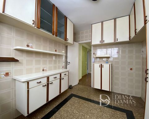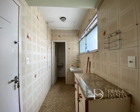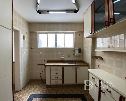 3 quartos (1 suíte), sala 2 ambientes com varanda, cozinha, lavanderia, despensa, lavabo de serviço e banheiro social. Uma vaga de garagem livre.